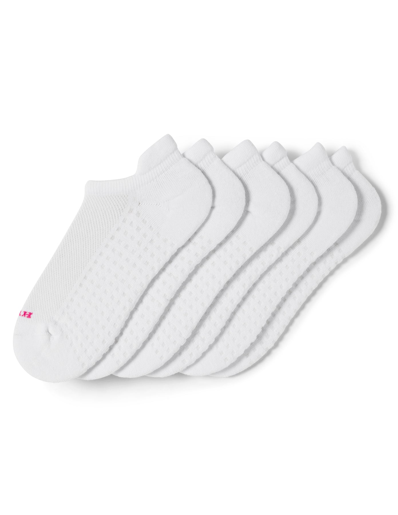 HUE Air Cushion No Show Tab Back 3-pair pack of socks feature a cushioned foot with ventilation and are perfect for any activity.