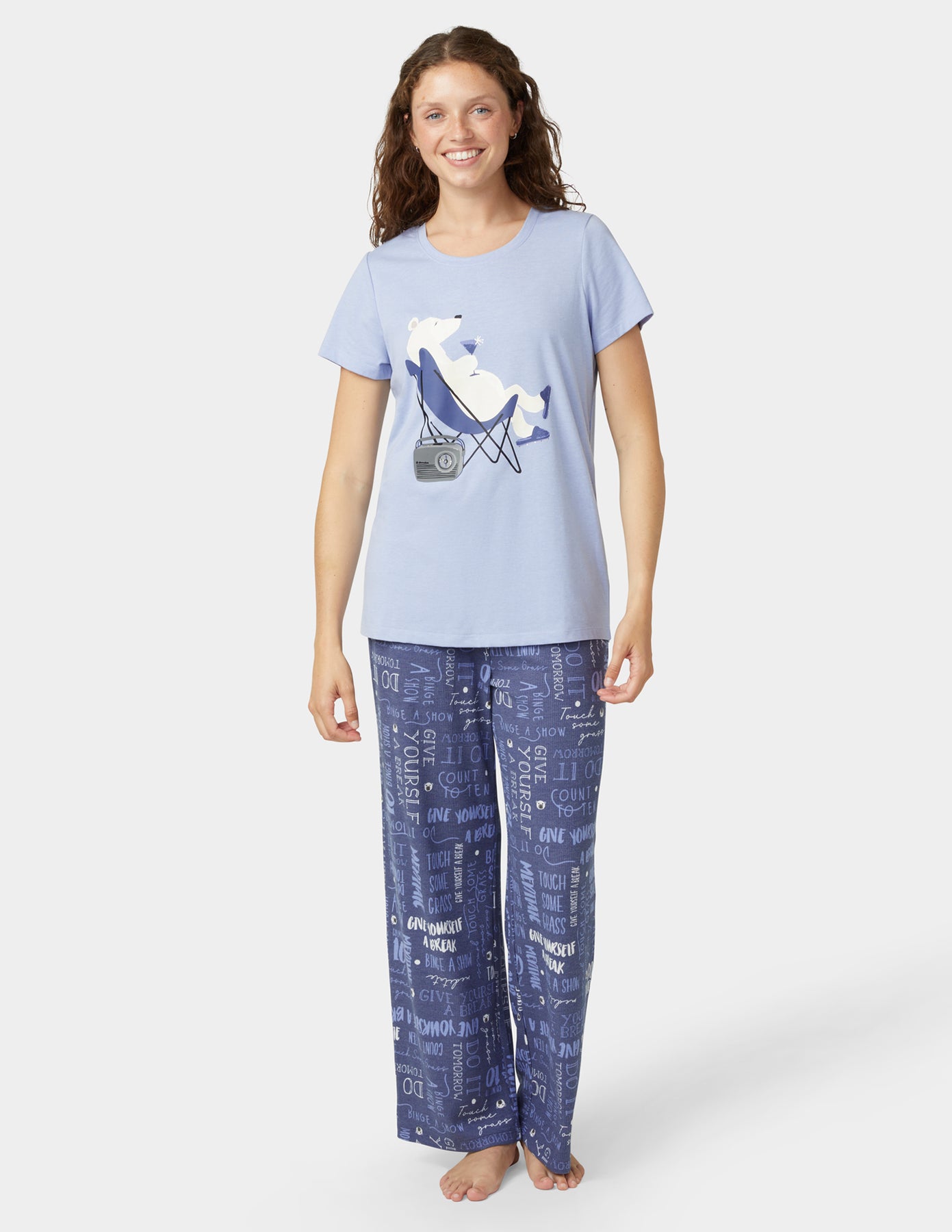 Get a great nights sleep in our HUE Embellished Short Sleeve PJ Set. This set includes a short sleeve relaxed top and a novelty printed pajama pant with a comfort elastic waistband. Perfect for gifting.