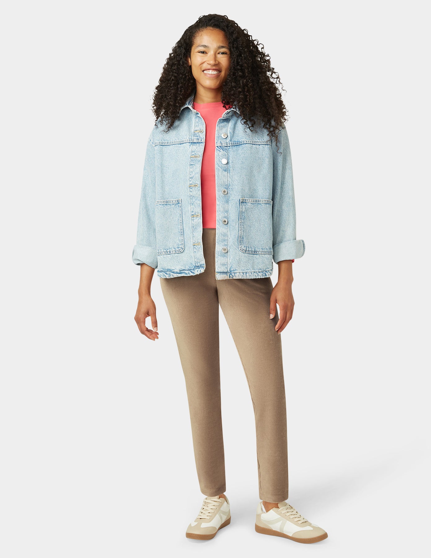 The Plush Corduroy style includes pants with a natural rise and relaxed tapered leg, crafted from knit corduroy with wider wale for added texture and warmth. Featuring a 30" inseam.