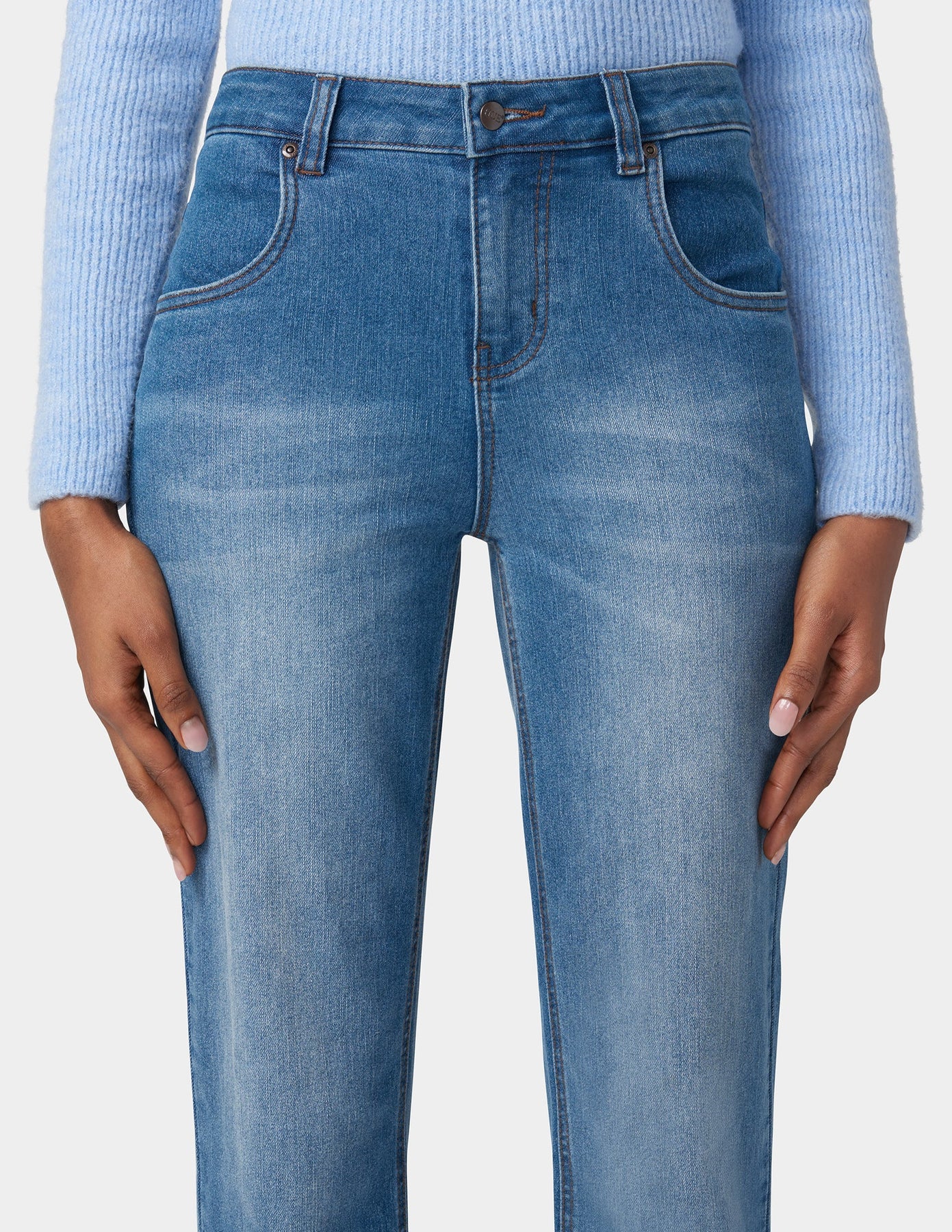 - Curve Friendly: Straight leg silhouette with real denim and comfort stretch. Universally flattering natural rise.
