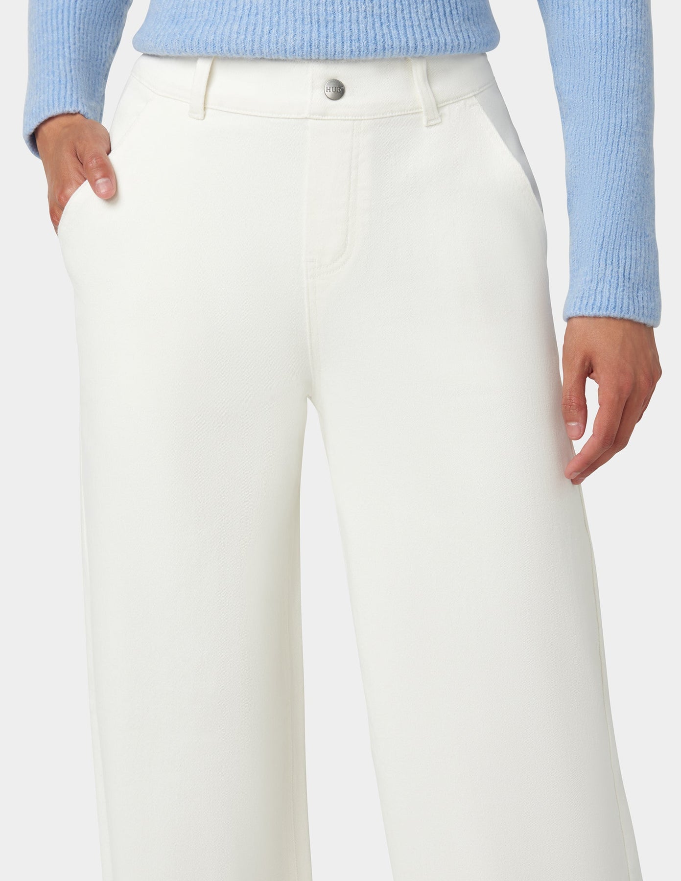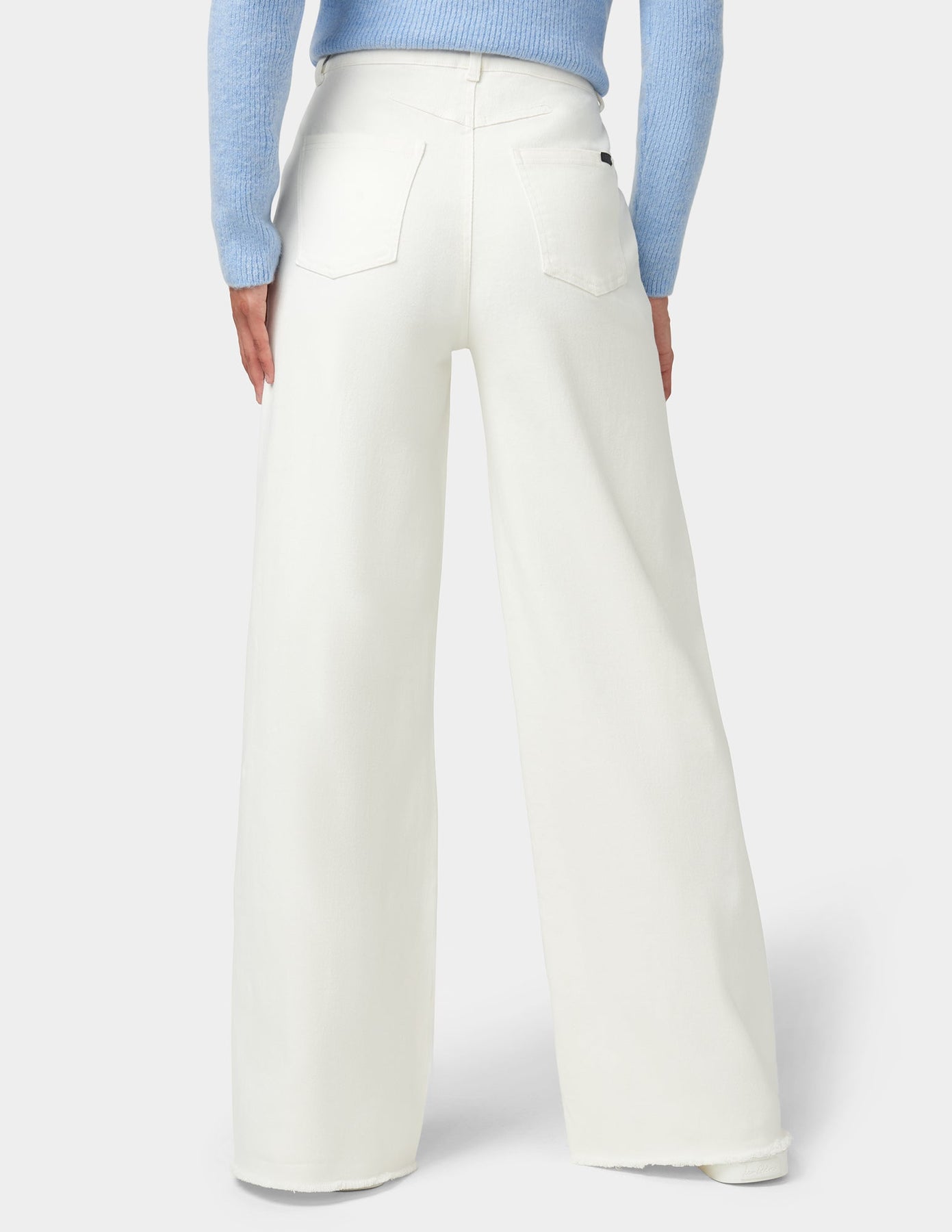 • Full length wide leg denim pants that fit below the ankle
