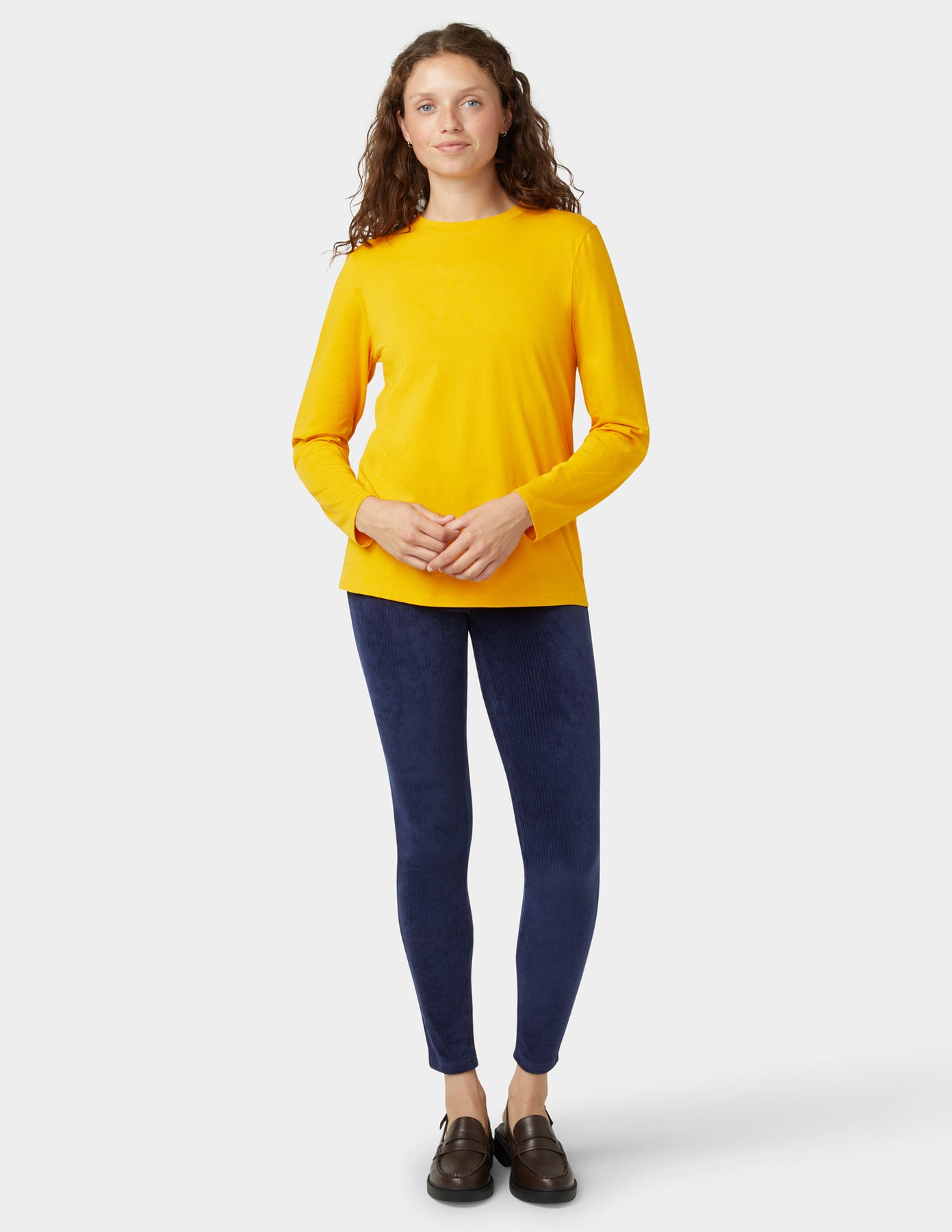 Turn heads with these fashionable corduroy leggings that feature a snug, comfortable stretch fit. Sleek thin-wale corduroy material will have you looking stylish. Wider waistband and stretchable ultra soft fabric allow a versatile range of motion, unlike traditional corduroy material. Wear them to work with a dressy top, or get casual and relaxed and pair with a tunic or shirt. Featuring a 29" inseam.