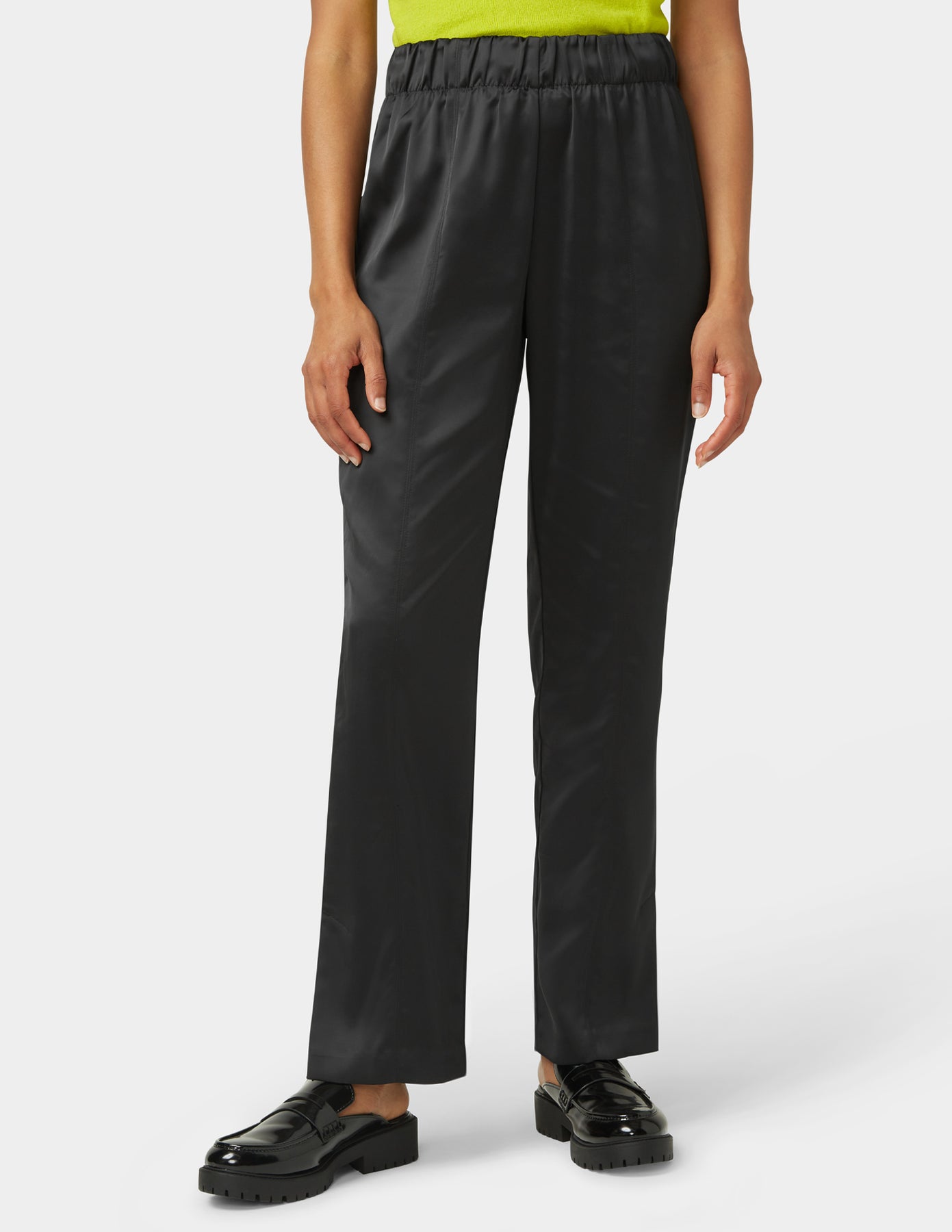 Step into sleek sophistication with the HUE Satin Wide Leg Pants—where everyday ease meets elevated shine. Designed with a natural rise and a 32-inch inseam, these pants drape effortlessly in a fluid wide-leg silhouette. The sateen stretch woven fabric moves with you, offering that just-right blend of comfort and luxe. Whether you're dressing them up or winding down, these full-length pants are your new wardrobe power player.