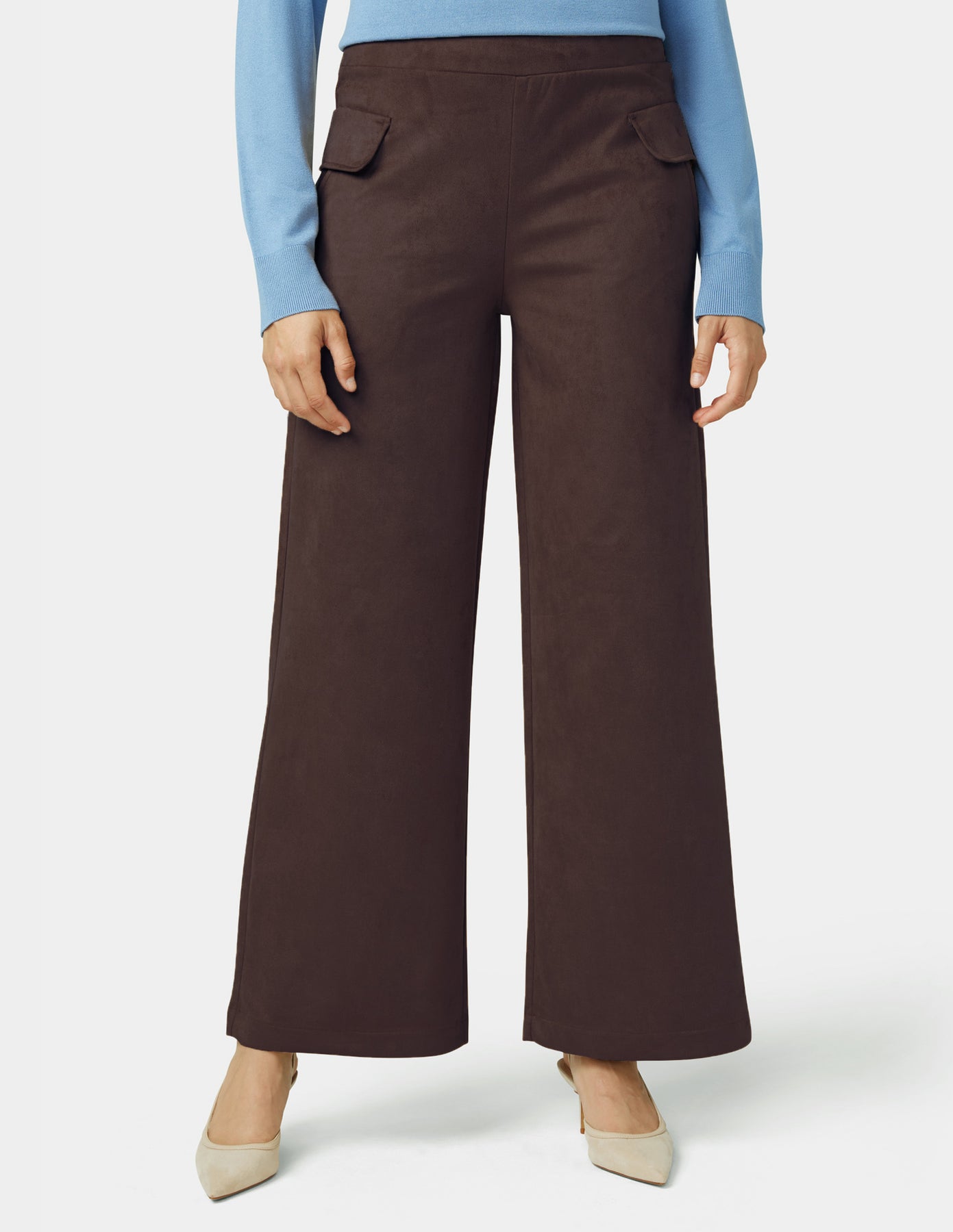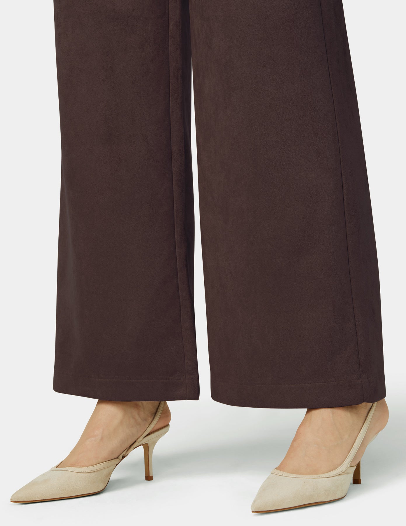 The Suede Wide Leg Pant features a natural rise and a relaxed wide leg, crafted from faux suede which provides a luxuriously soft texture with every movement. Features a 31" inseam.