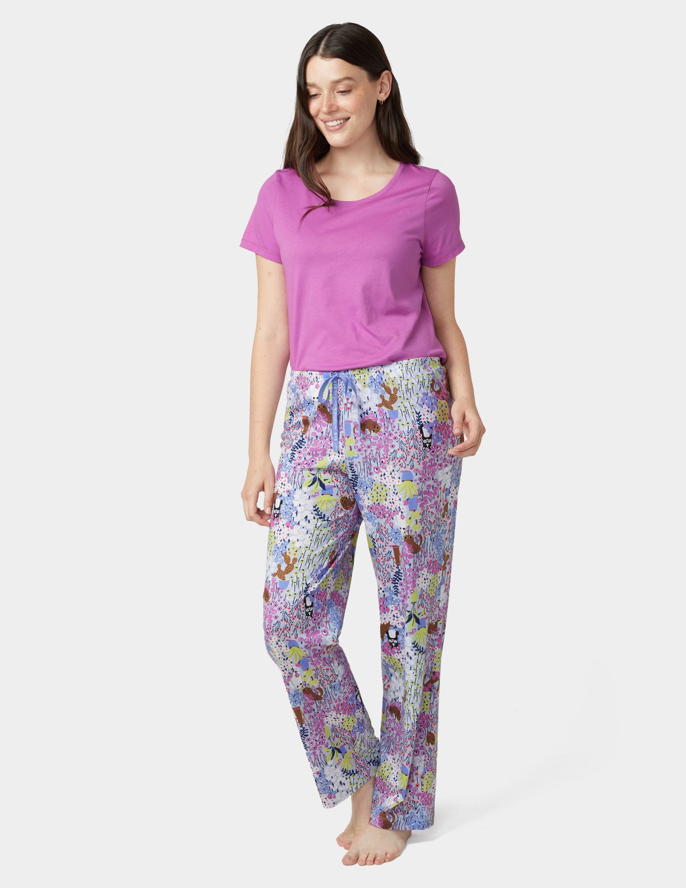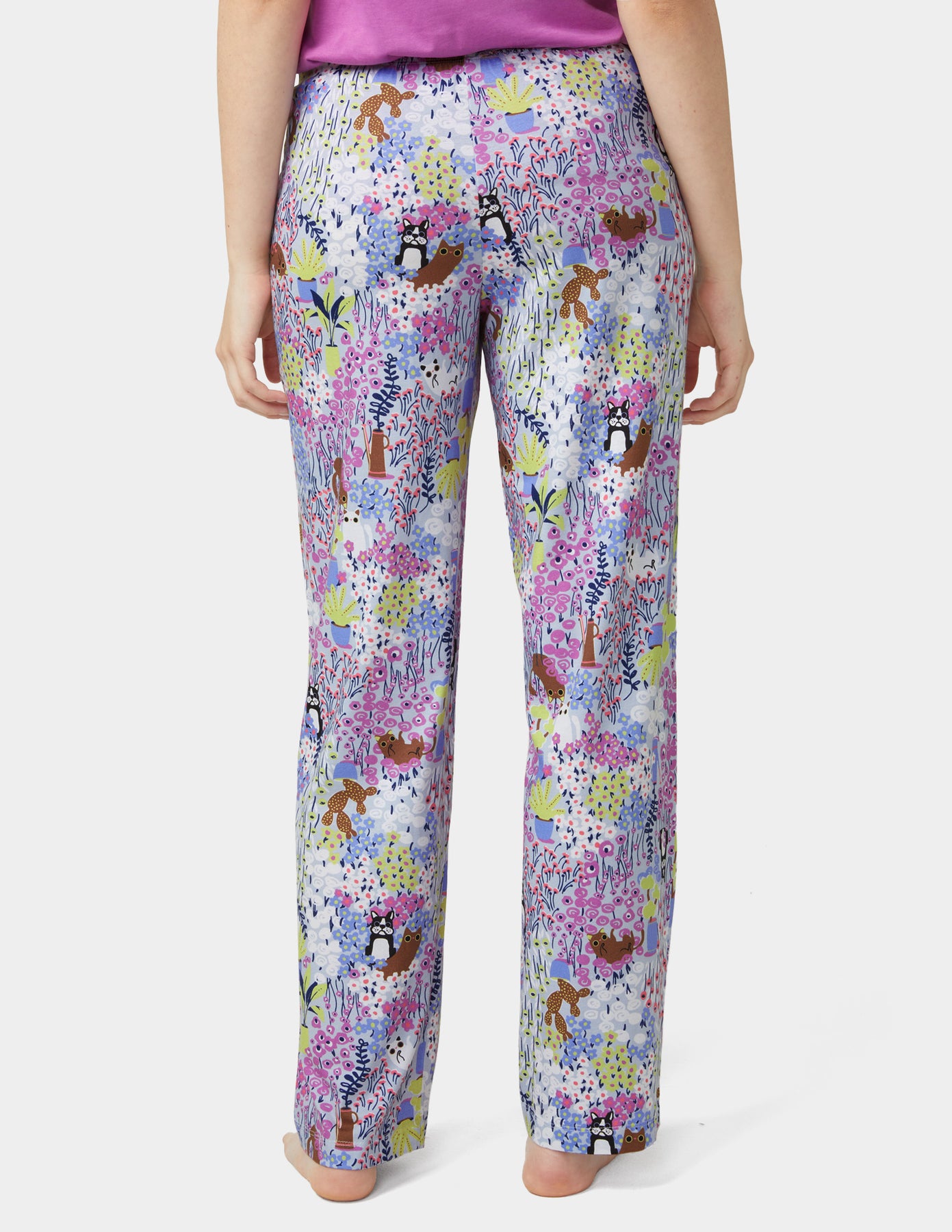 Look great in our HUE Garden Gato y Perro long pajama pants. Available in a colorful print hand-drawn by HUE NYC studio design team. HUE women's long pajama pants feature a soft comfort elastic waistband and relaxed leg. Perfect for a great night's sleep.