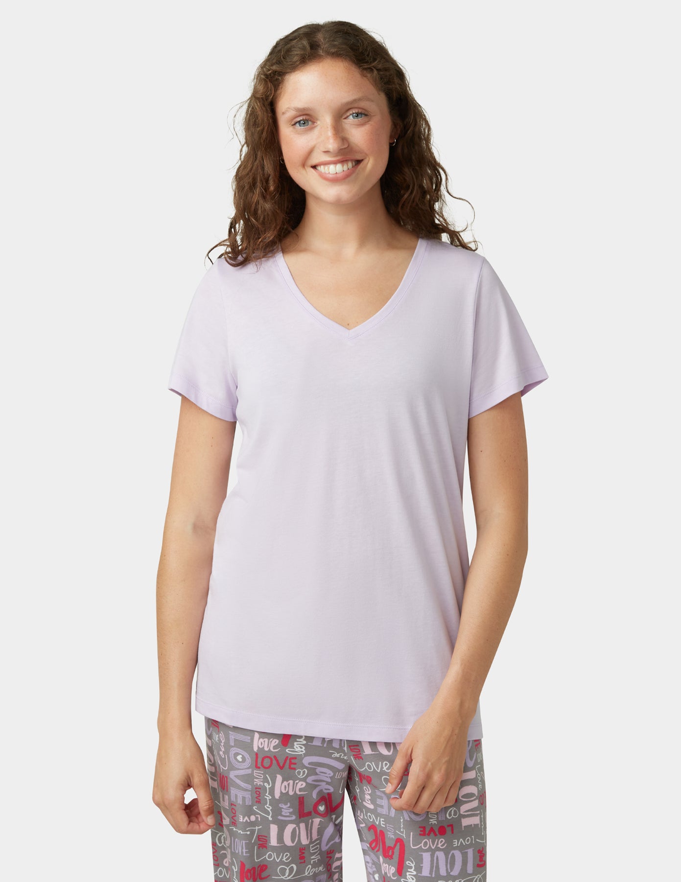 HUE Solid Short Sleeve V-Neck Sleep Tee is roomy and comfortable for a great night's sleep. Constructed of a soft cotton blend material. Featuring short sleeves and a V-neckline, this tee is a must-have for your sleepwear collection.