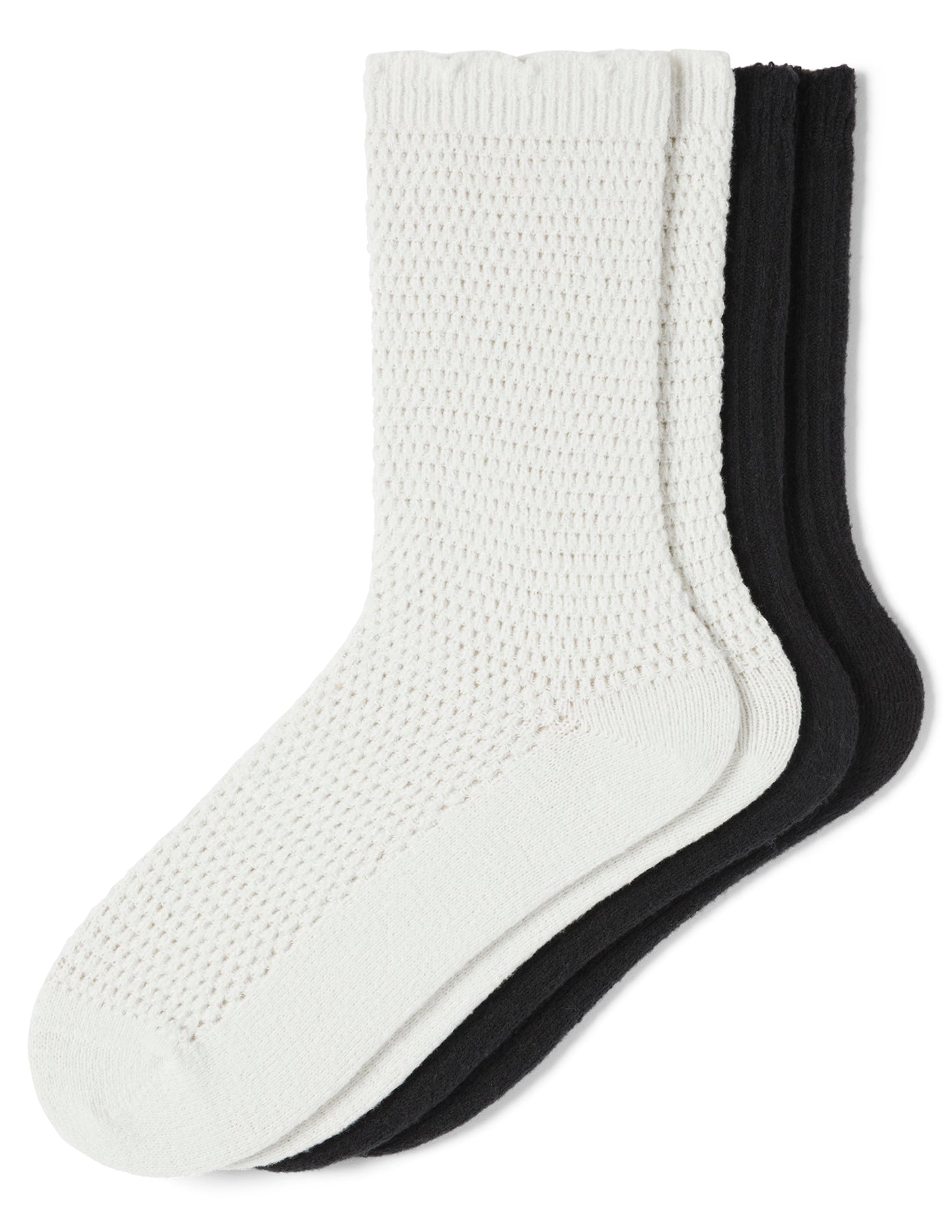 - Dual design includes one pair that showcases a breathable lattice knit structure with scalloped edges, while the other offers a timeless ribbed texture.