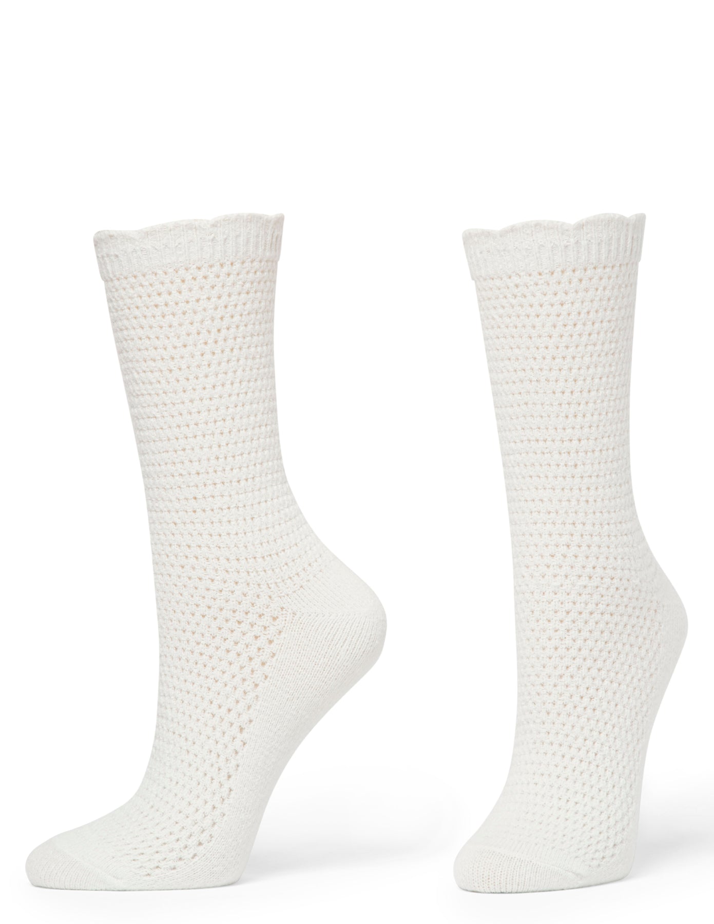 Elevate your sock collection with our Lattice Scallop Crew Sock 2-Pair Pack. This thoughtfully curated set includes one pair featuring an intricate lattice knit pattern and scalloped edges, and another pair with a classic ribbed texture, both designed to offer comfort and style. Crafted for breathability and durability, these socks are perfect for adding a refined finish to any outfit.