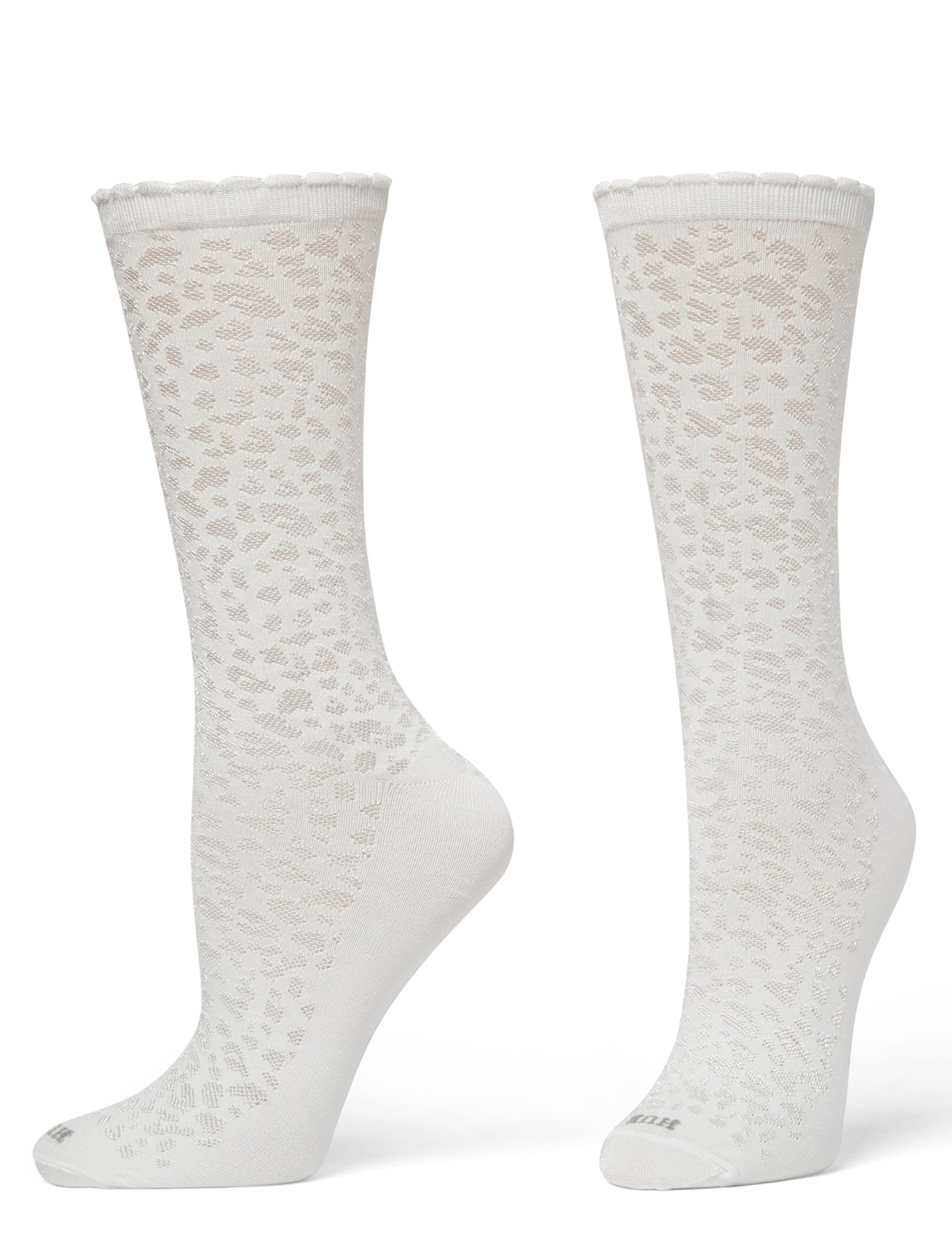 Step into a world where comfort meets style with our Textured Animal Crew Socks featuring a delicate scalloped edge. Crafted from a soft cotton blend, these socks offer a cozy fit adorned with subtle animal-inspired textures, adding a touch of whimsy to your wardrobe. The scalloped edge provides a feminine flair, making them perfect for both casual outings and cozy nights in.