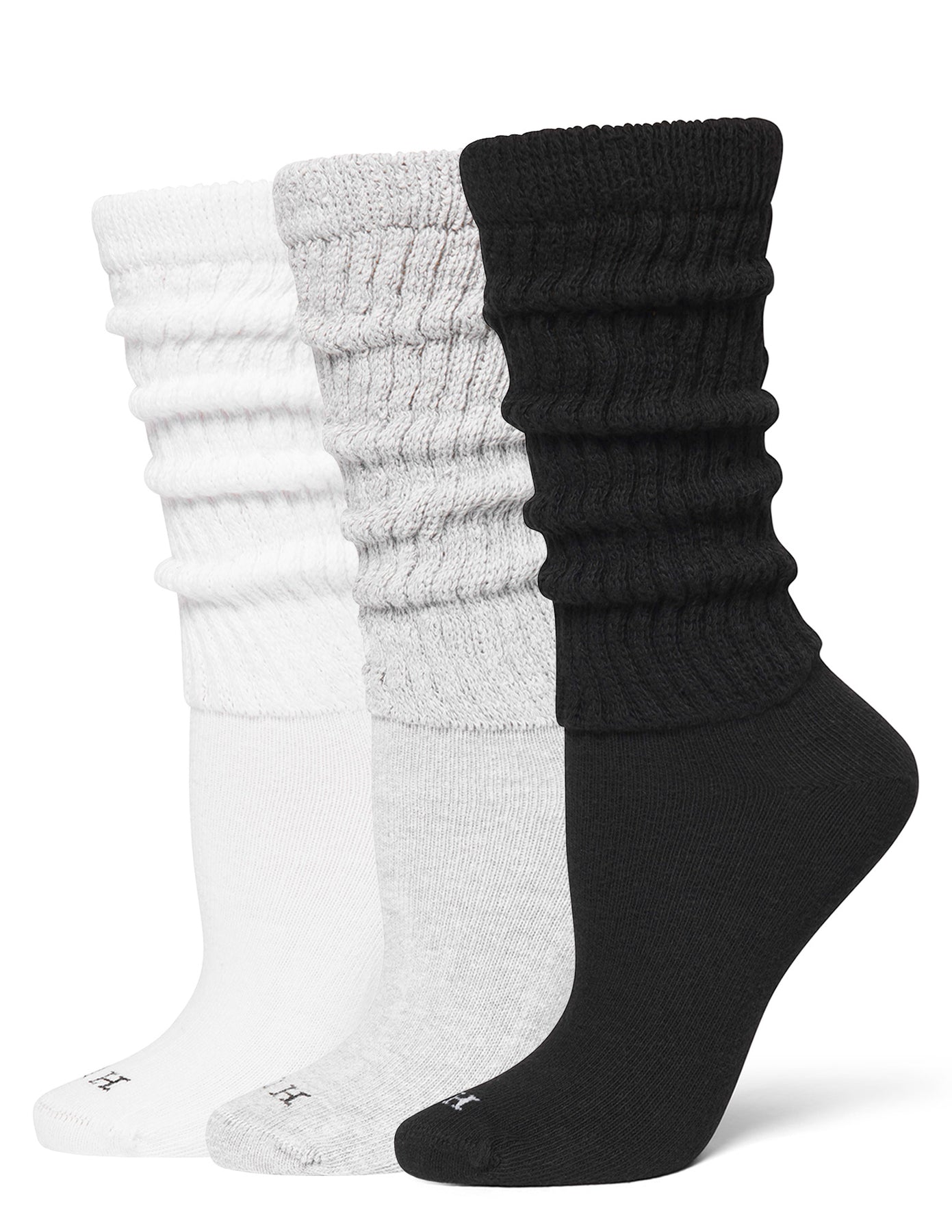 HUE Slouch Socks have a loose, slouchy fit that can be worn over leggings and slouched down for effortless style. The Slouch also pairs great with bare legs and sneakers. 3 pair pack.