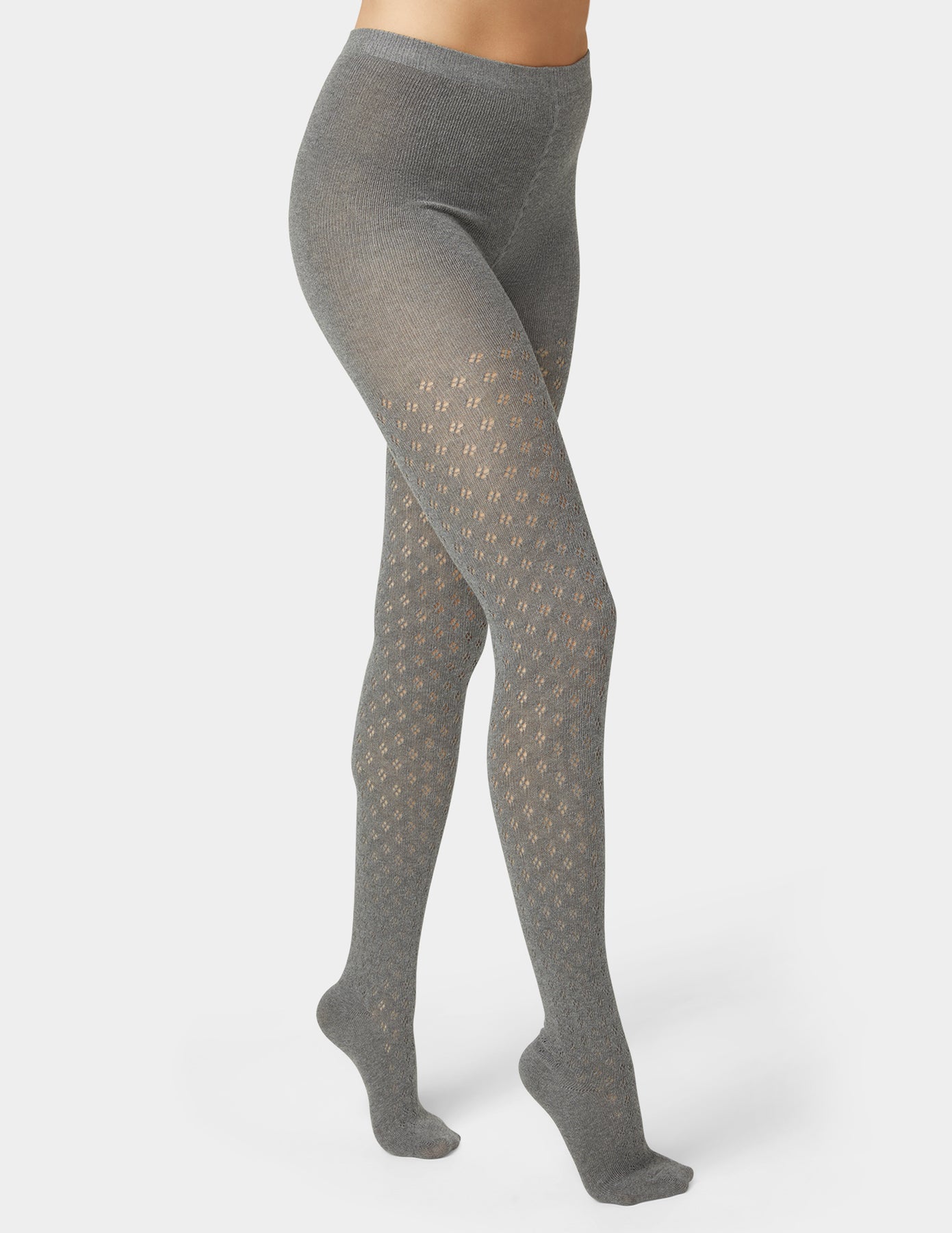 Wrap your legs in cozy elegance with our Pointelle Diamond Sweater Tights. Crafted with soft, sweater-knit fabric, these tights feature a delicate pointelle pattern in a subtle diamond design that adds texture and charm to any outfit. The snug yet breathable fit makes them perfect for layering under dresses, skirts, or oversized sweaters during cooler months.