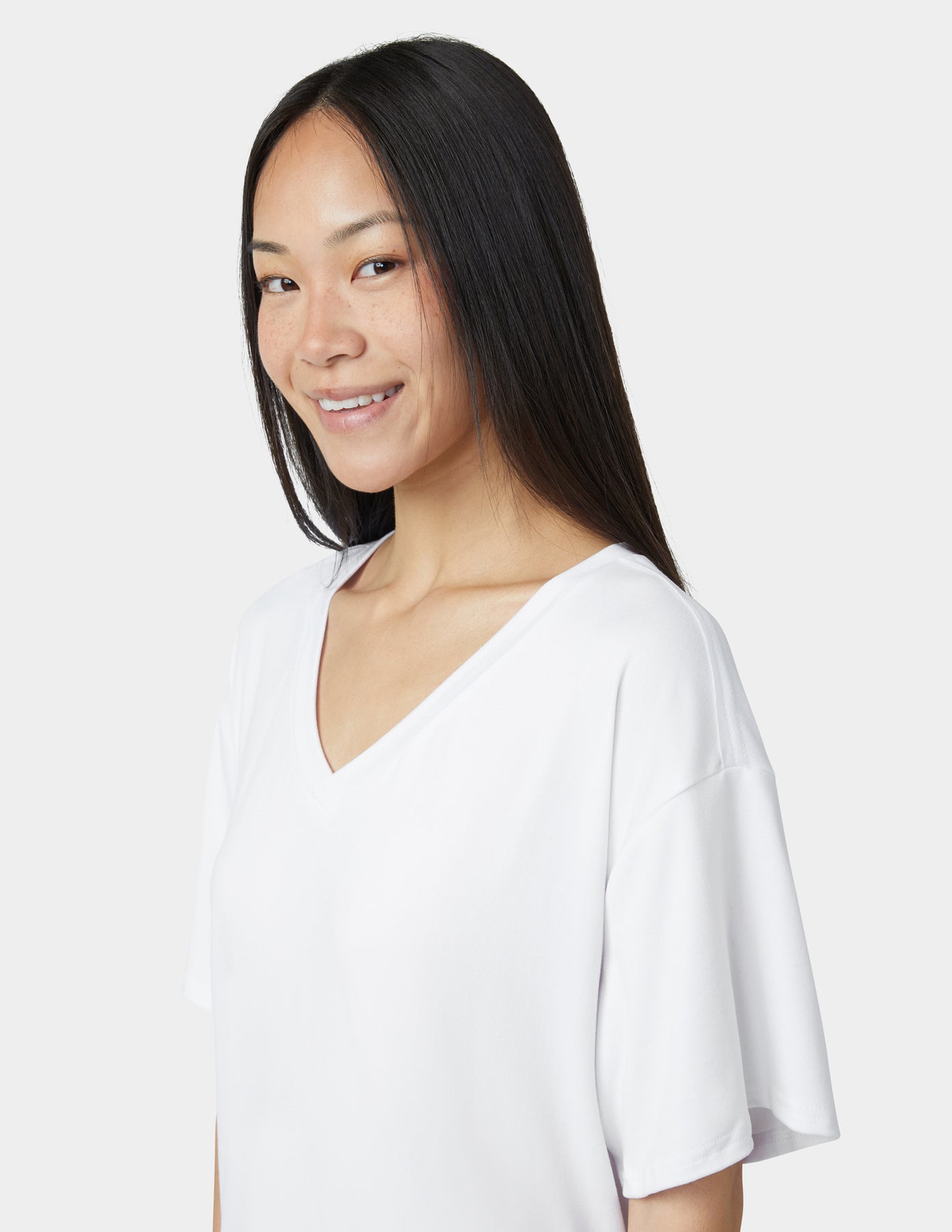 HUE Boyfriend Legging Tee. A loose fitting oversized tee, perfect for lounging or casual wear. Features a V-neckline.