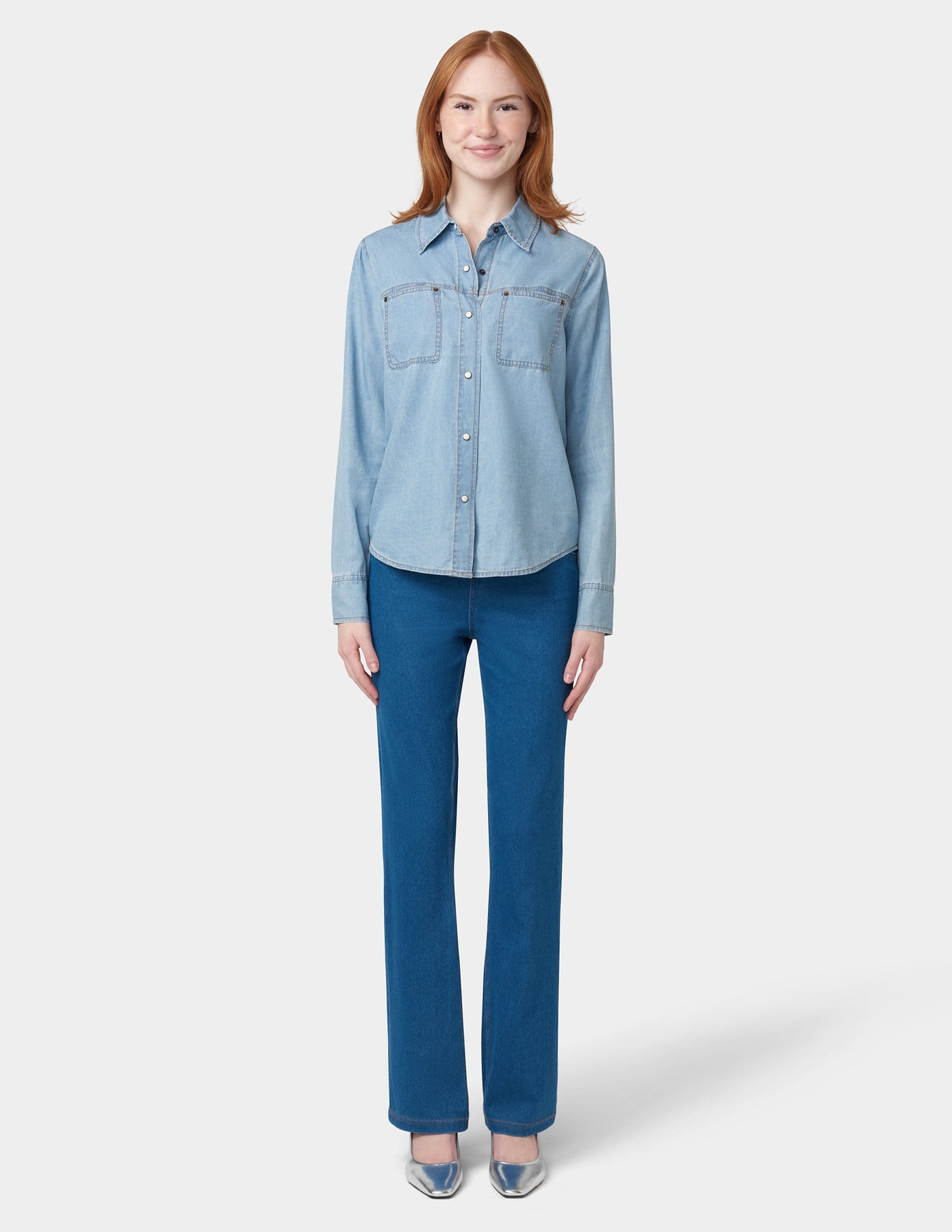 Upgrade your casual Friday look with the HUE 2 Pocket Classic Shirt. Its lightweight denim and two front pockets with interior color detail add a modern twist to this top, perfect for the office or a day out.