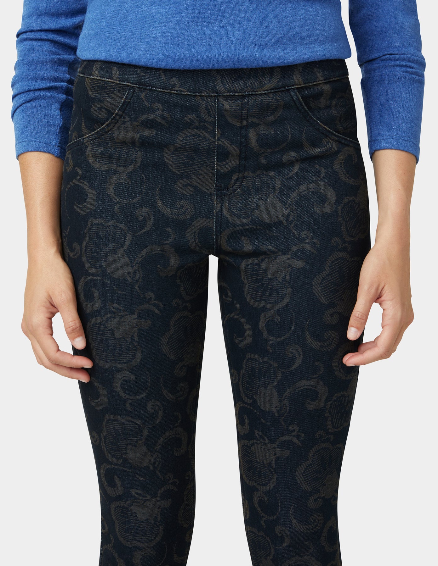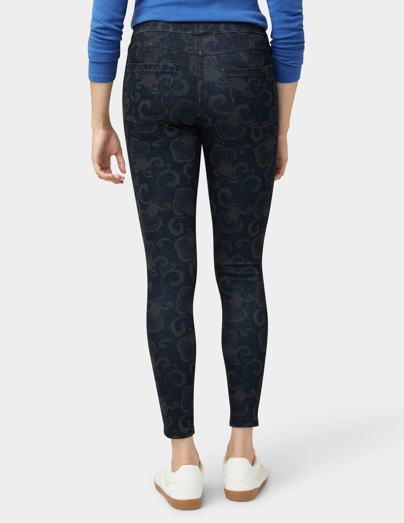 Blossom in style with our Etched Floral Ultra Soft Denim Leggings. These high-rise skinny jeans blend workwear with statement flair, featuring a 28" inseam and crafted in snug cotton-stretch.