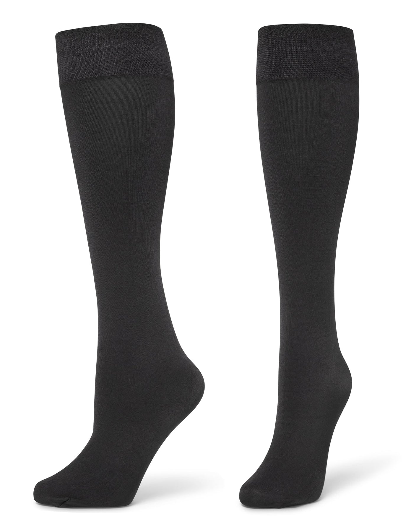 HUE Luster Knee Highs add a subtle sheen, enhancing your skin tone for refined elegance in every step.