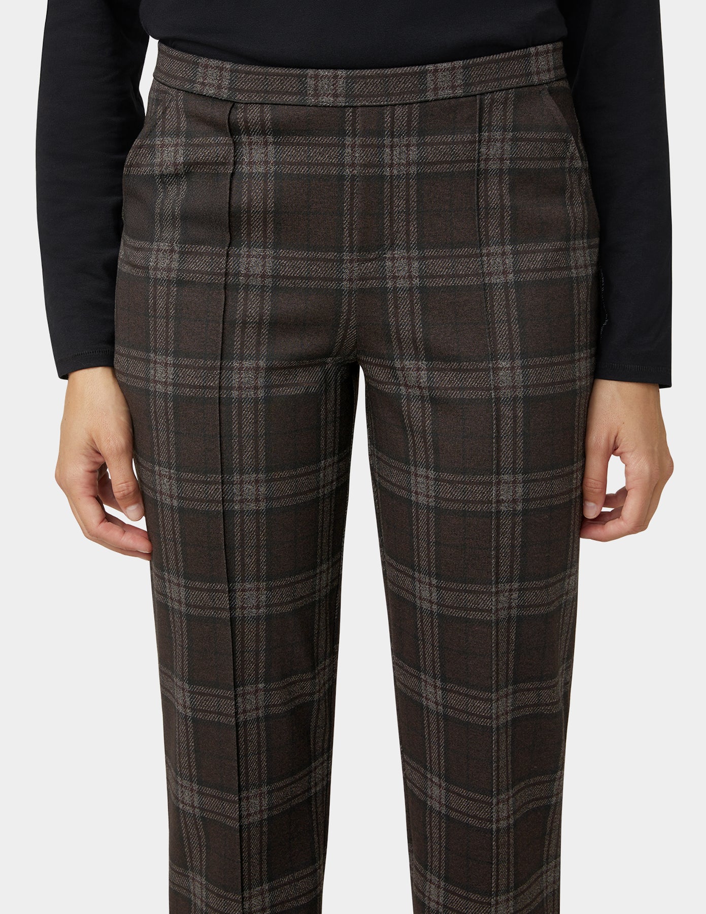 Add a classic touch to your collection with our Plaid Natural Rise Pull-On Trousers. The blend of tencel, rayon, and spandex in ponte fabric ensures a comfortable fit while maintaining a relaxed straight leg silhouette, perfect for effortlessly stylish looks. Featuring a 30.5" inseam.