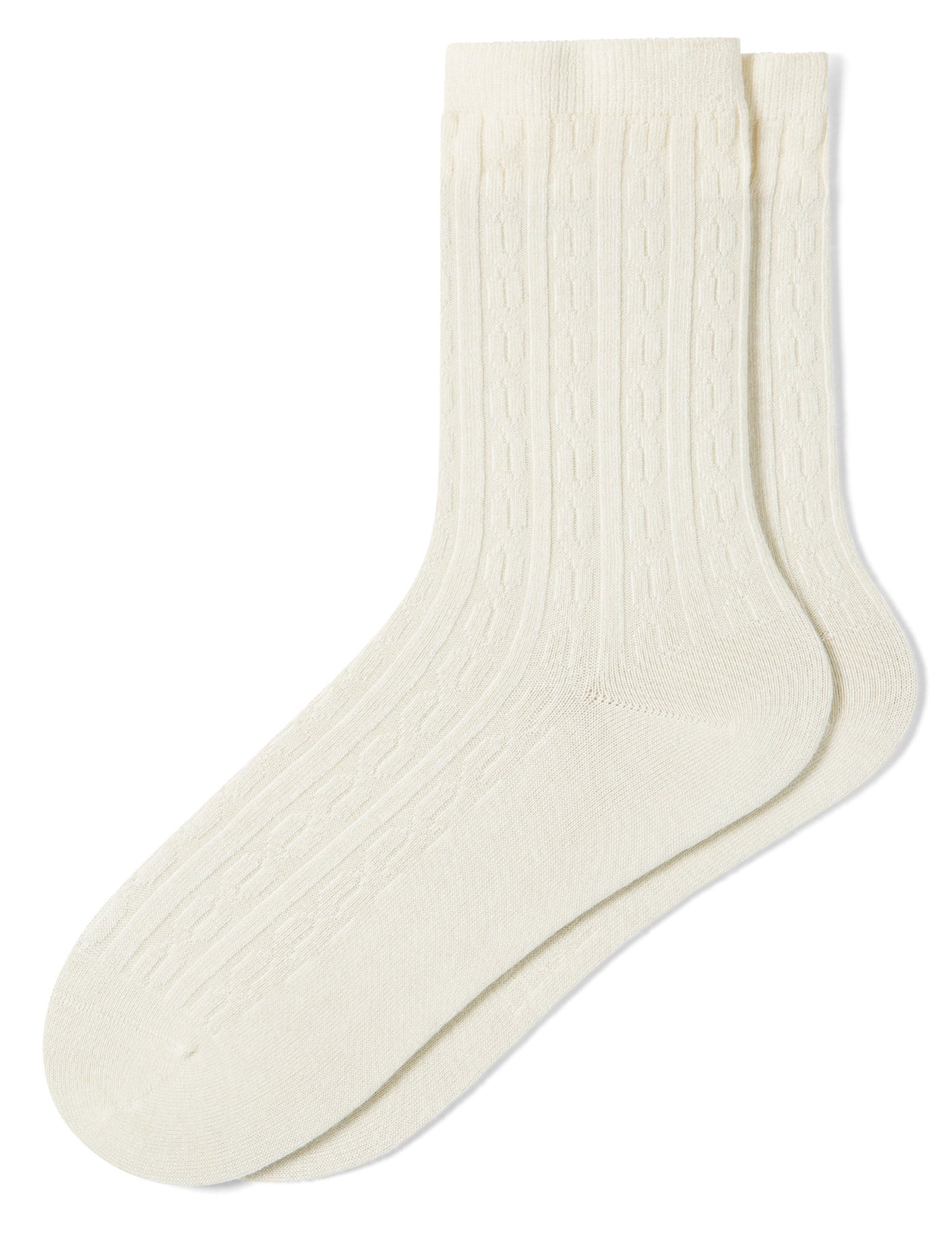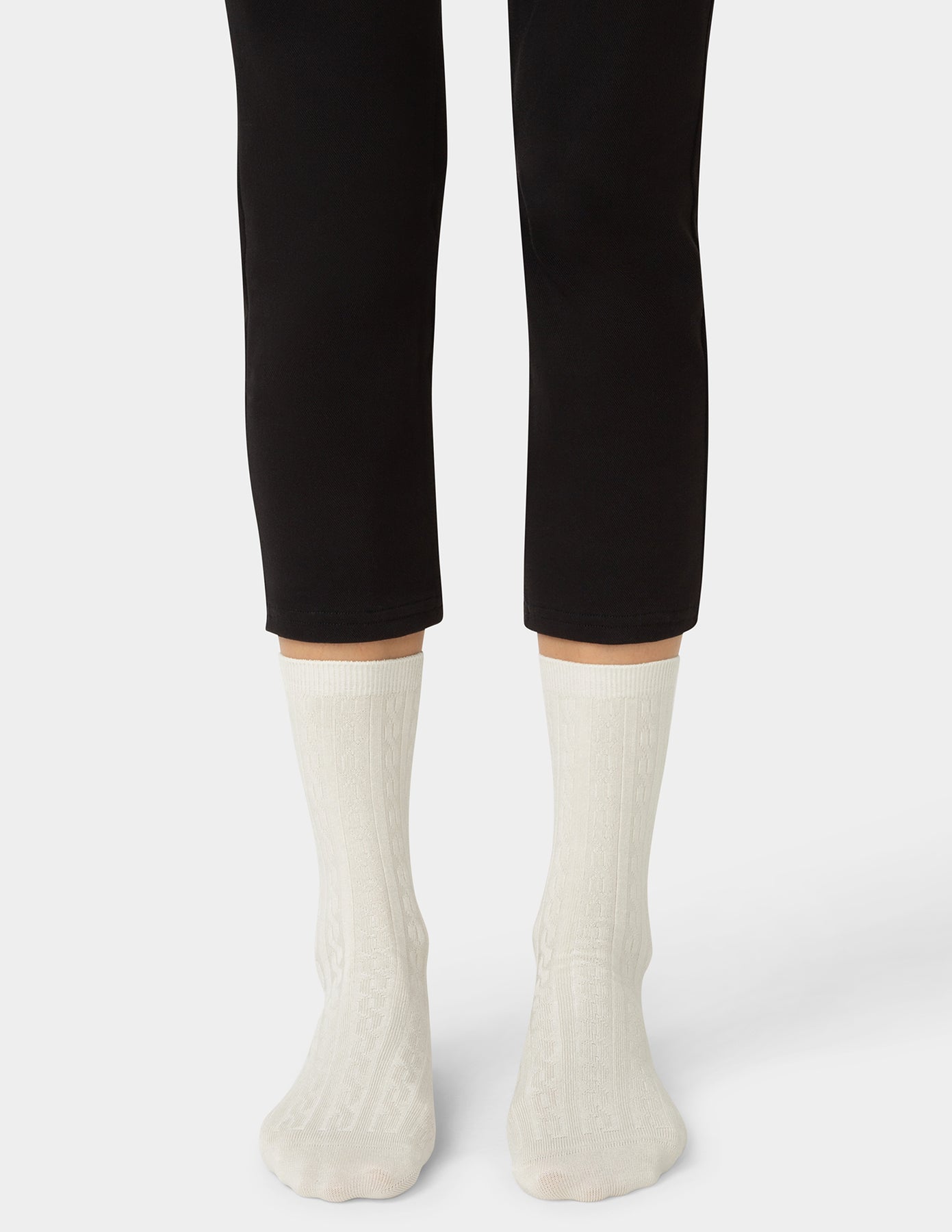 Dress your feet in something subtle but stunning. A refined cable knit meets a delicate sheen of silk — this sock is where comfort and chic collide. It’s the little hero in your everyday wardrobe, always ready to elevate a plain sneaker or add polish under loafers
